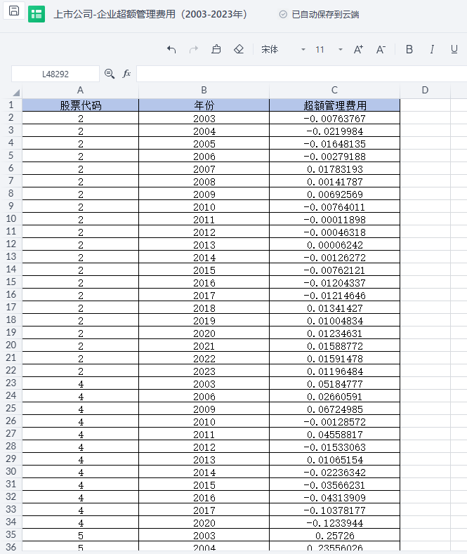 包含指标:股票代码 年份 超额管理费用