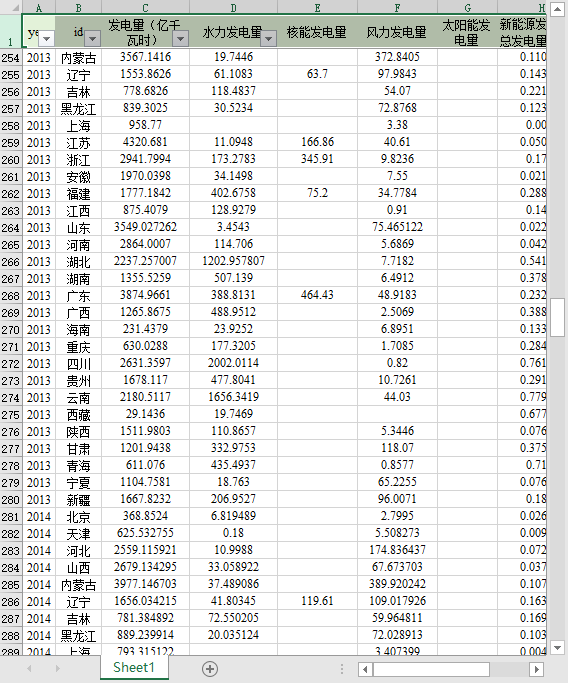 全面能源发电数据集2005-2022省份可再生清洁能源发电量水力核能风力太阳能新能源发电量