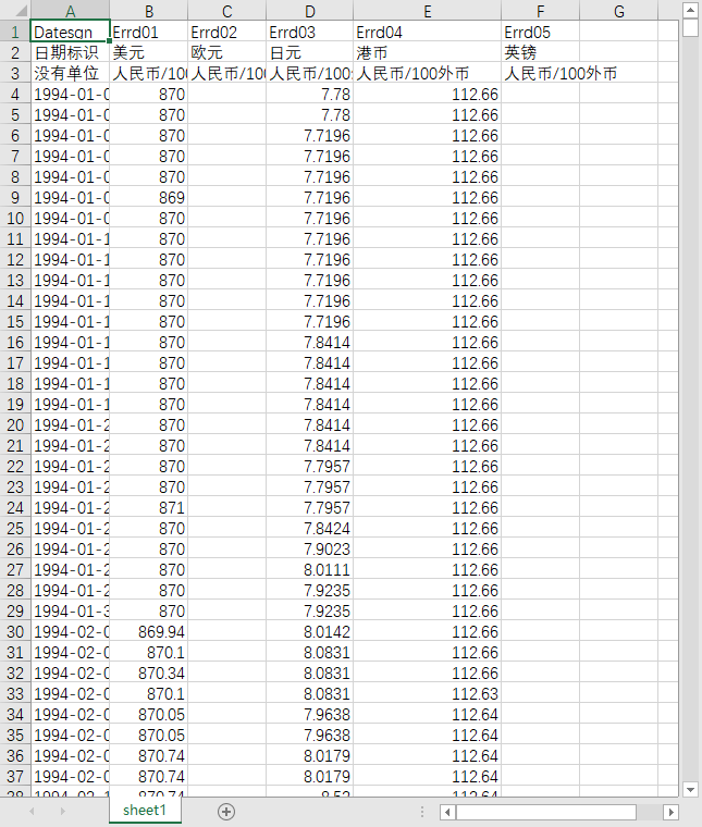 日期标识 美元 欧元 日元 港币 英镑