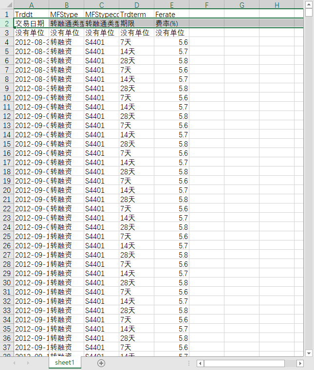 交易日期 转融通类型 转融通类型编码 期限 费率(%)