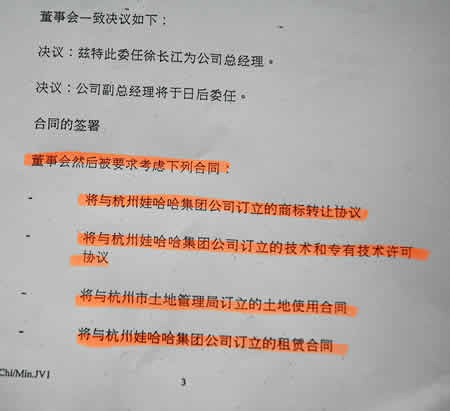 以上就是达能方向媒体申明的三次修改合同的过程,事实上双方三次修改的并不是合资合同,而是当时签订合资合同同时签订的商标转让协议。