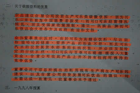 1997年12月宗庆后建议合资企业生产非常可乐,外方不同意;