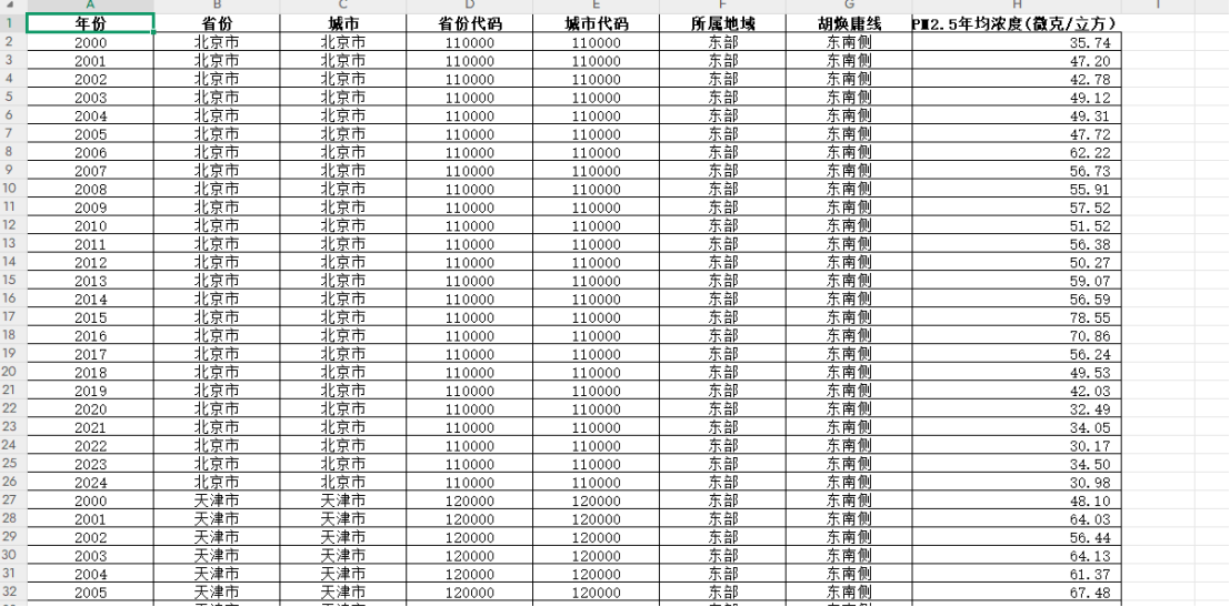 数据名称:2000-2024年地级市-PM2.5年均浓度数据