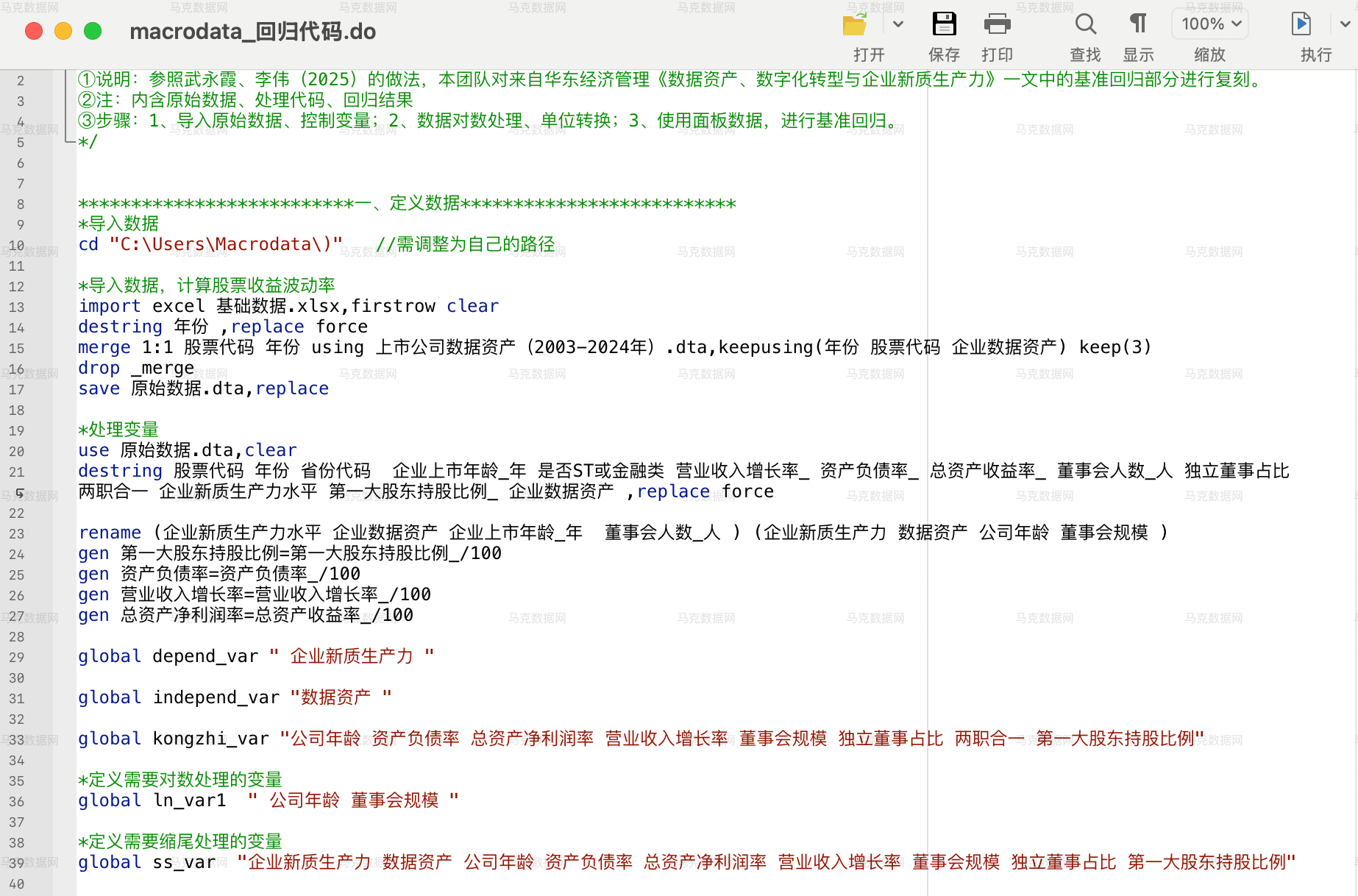 数据内容:包含原始变量数据及基准回归所需的数据文件与回归代码