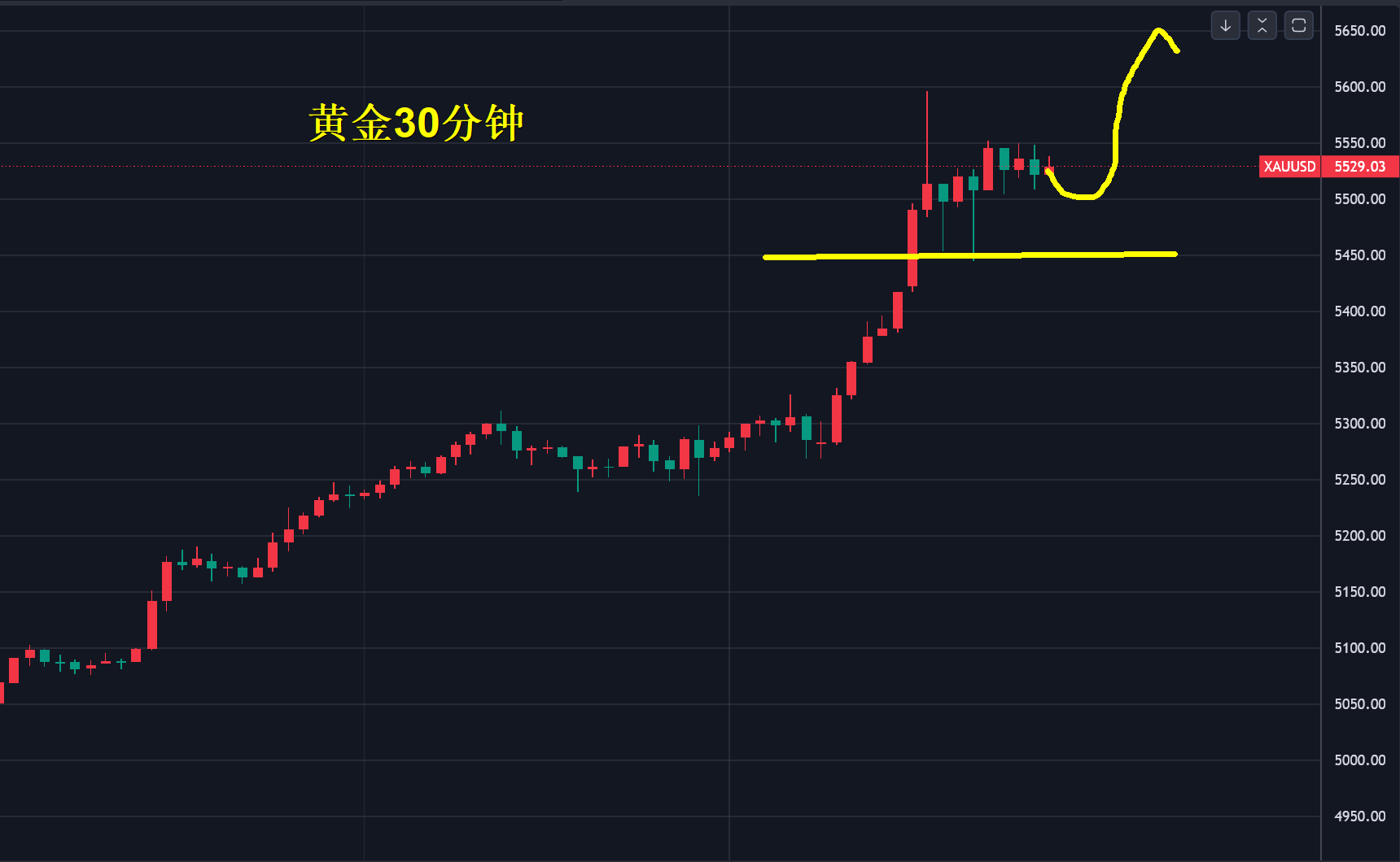 今天早上金价站到5600美元后回到5450美元,一会功夫掉了150美金,对于现在的行情而言并不算大,每天的振幅300美金很正常,白银表现的更加强势,风险事件市场关注的往往是共识和情绪共振。