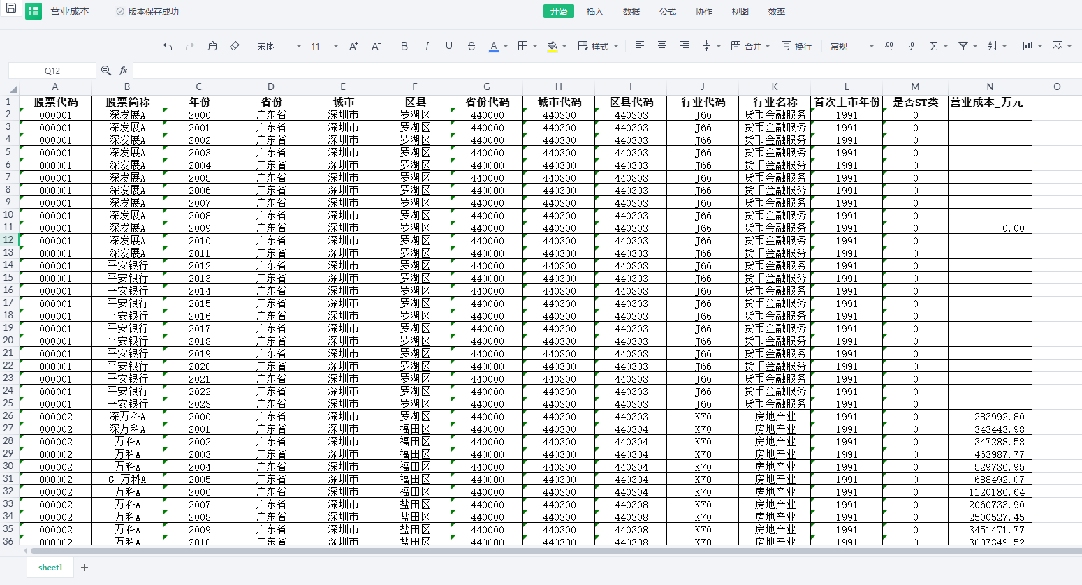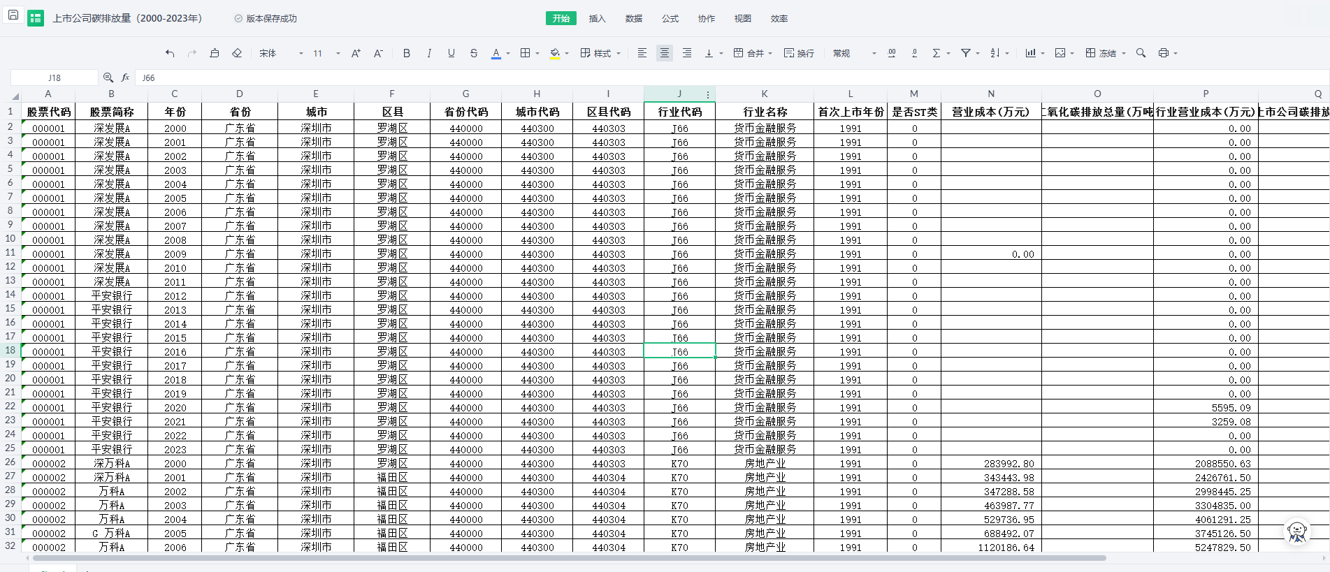 是否ST类 | 营业成本(万元) | 二氧化碳排放总量 |