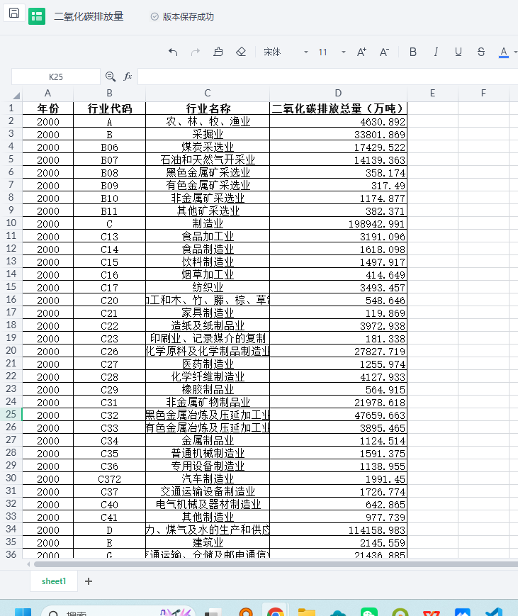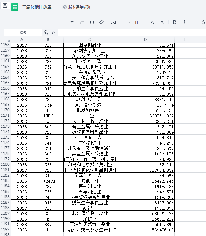 1.整理行业碳排放量