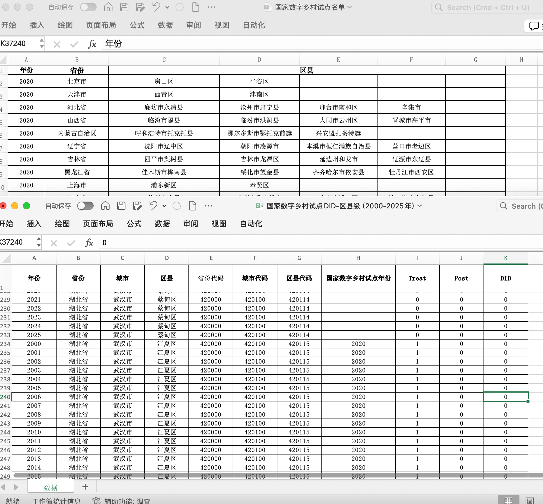中国国家数字乡村试点政策区县级DID面板数据(试点识别与政策时点构造方法,2000–2025年,覆盖全国区县)