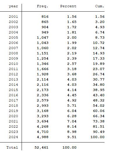 | 上市公司数字化转型程度指标计算Stata代码(2001-2024年数据) | https://bbs.pinggu.org/thread-15681696-1-1.html | 2024 |