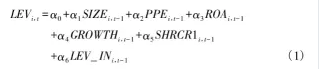 模型(1)中的被解释变量为企业的实际资产负债率(LEV),控制变量包括企业规模(SIZE)、有形资产比(PPE)、盈利能力(ROA)、总资产增长率(GROWTH)、股权集中度(SHRCR1)和行业资产负债率中位数(LEV_IN)。实际资产负债率减去使用该模型拟合出的企业目标负债水平,即为企业的过度负债水平或者说企业的过度负债率。