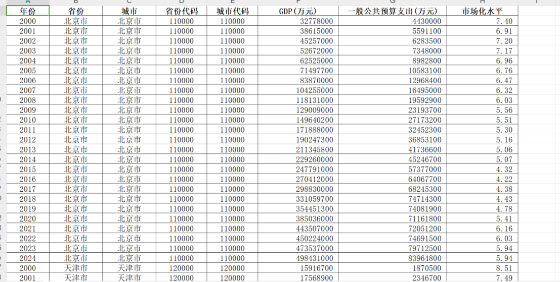 数据名称:2000-2024年地级市市场化水平