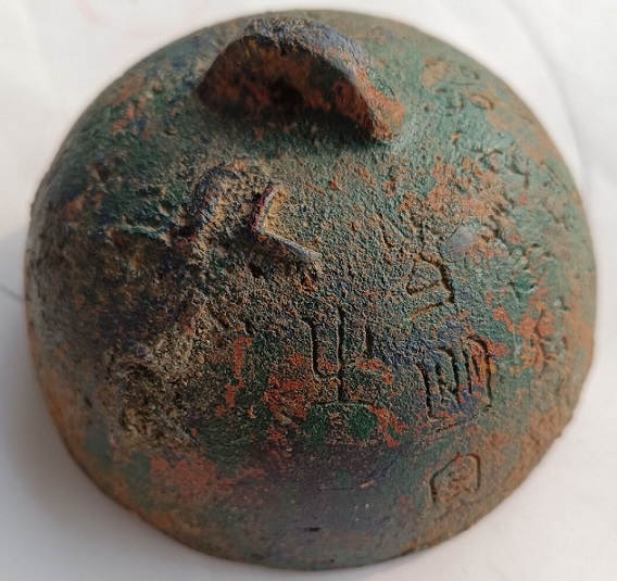 在古玩市场地摊买到的东周空心铜权空心,重693克,直径102毫米,高62毫米。字体大篆,48个字的铭文。表明早于秦代,可能是东周的。