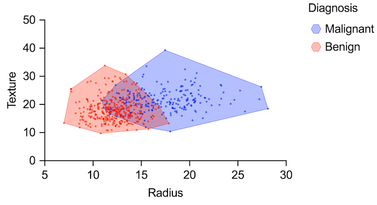 您可以在多变量图表中添加置信椭圆或凸包,以增强聚类分析的结果展示,或直接突出数据集中的分组。