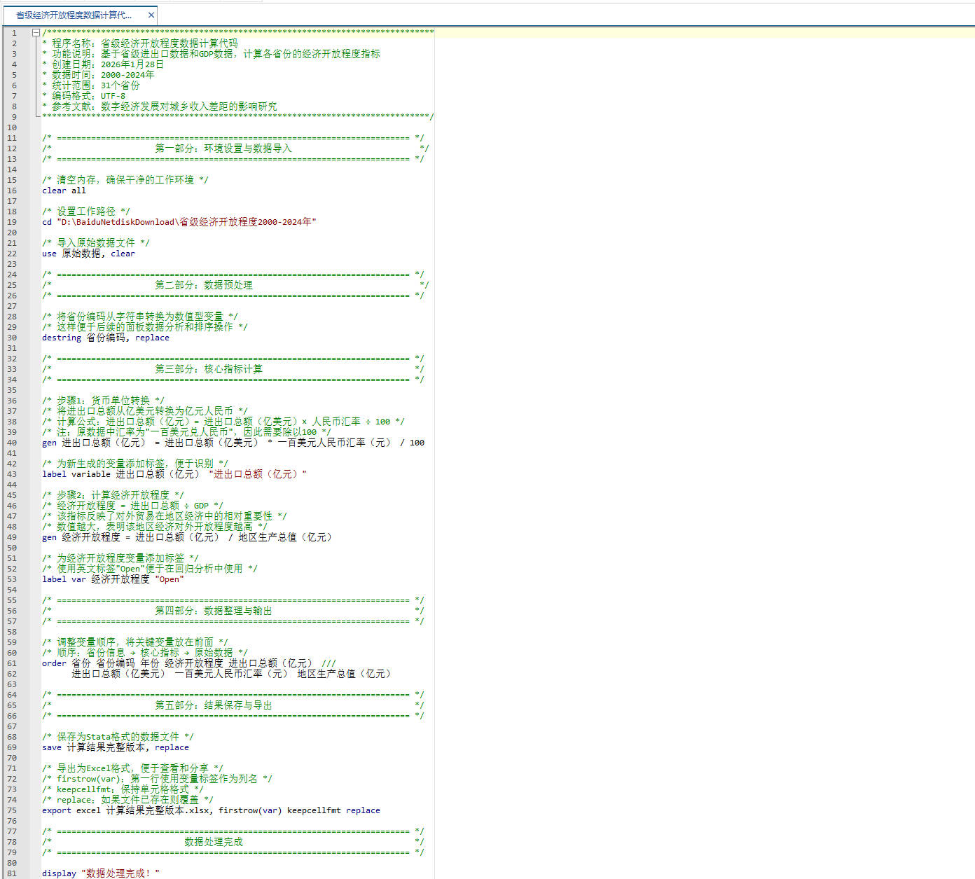 省级经济开放程度数据计算代码.do Stata计算代码