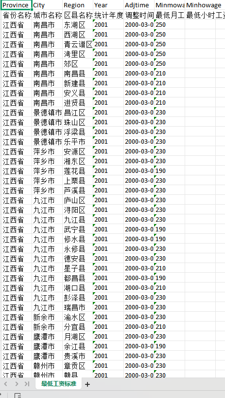 Year[统计年度]-以各省市最低工资标准调整时间所在年度为统计年度,若当年度没有进行最低工资调整,则以当年度作为统计年度