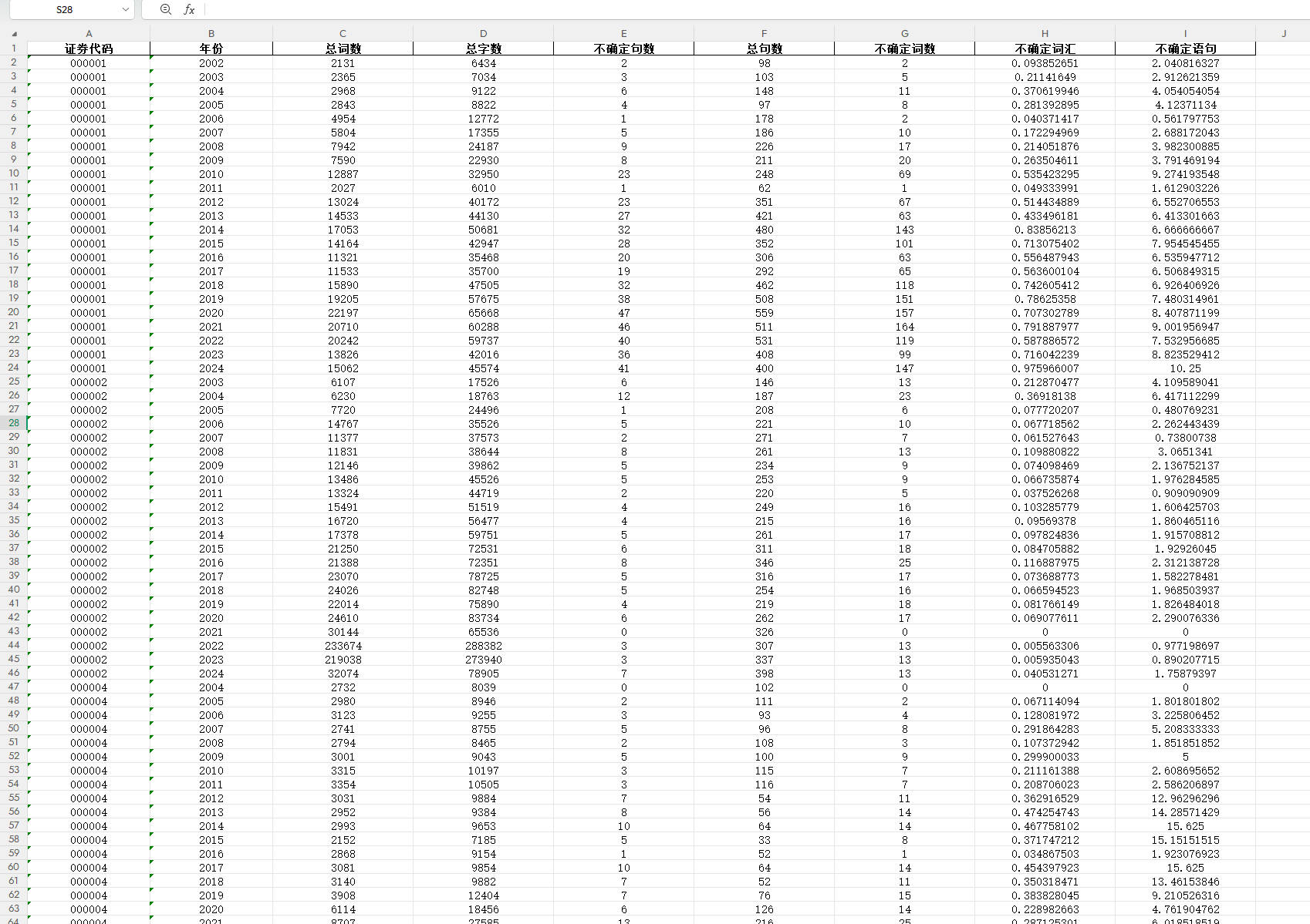 上市公司-不确定性感知数据.xlsx 计算结果(Excel格式)