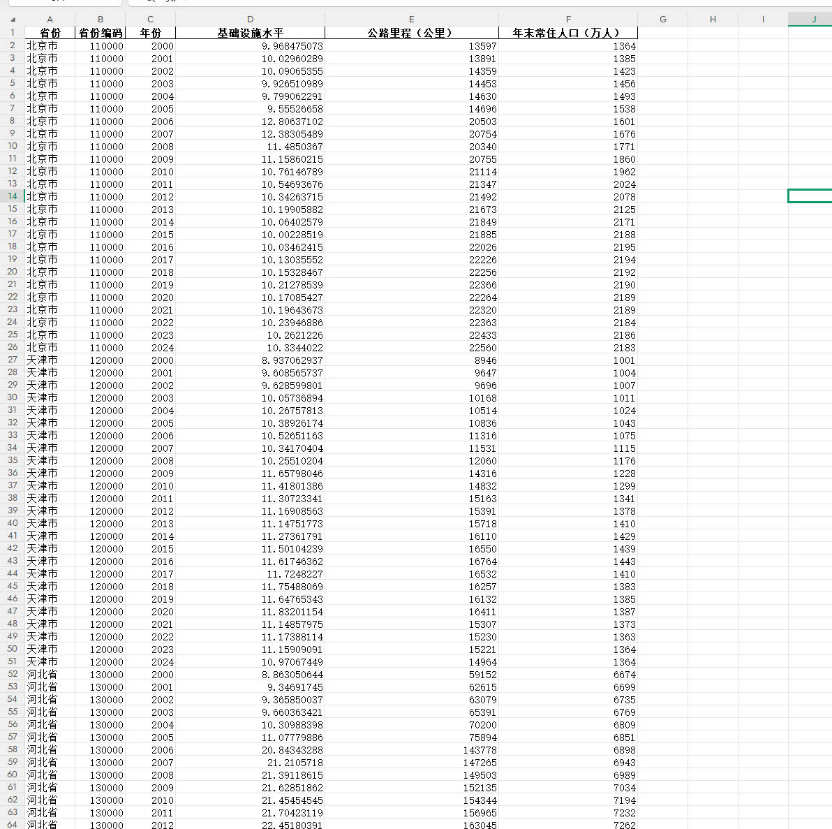 各省基础设施水平.xlsx 数据文件(Excel格式)