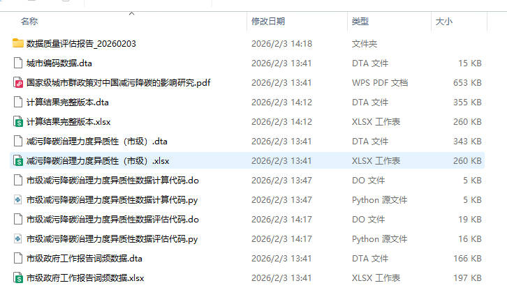 市级减污降碳治理力度异质性数据评估代码.py Python评估代码