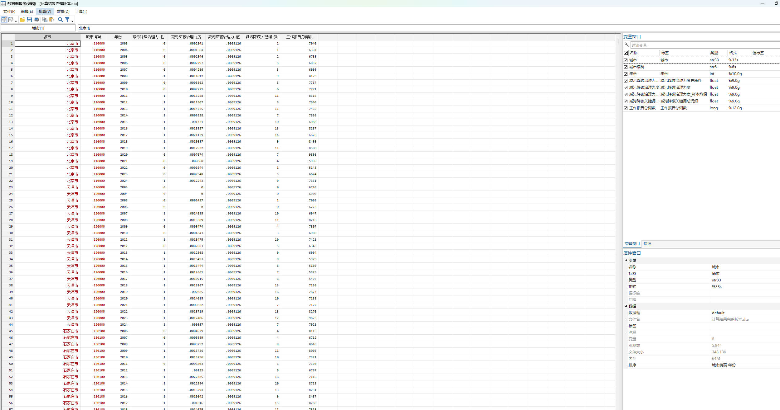 减污降碳治理力度异质性(市级).dta 计算结果(Stata格式)