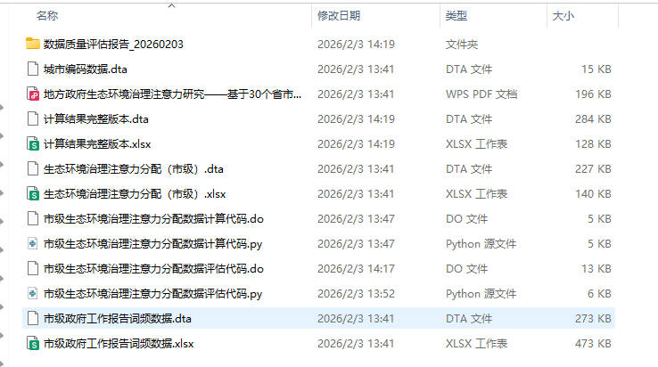 生态环境治理注意力分配(市级).dta 计算结果(Stata格式)