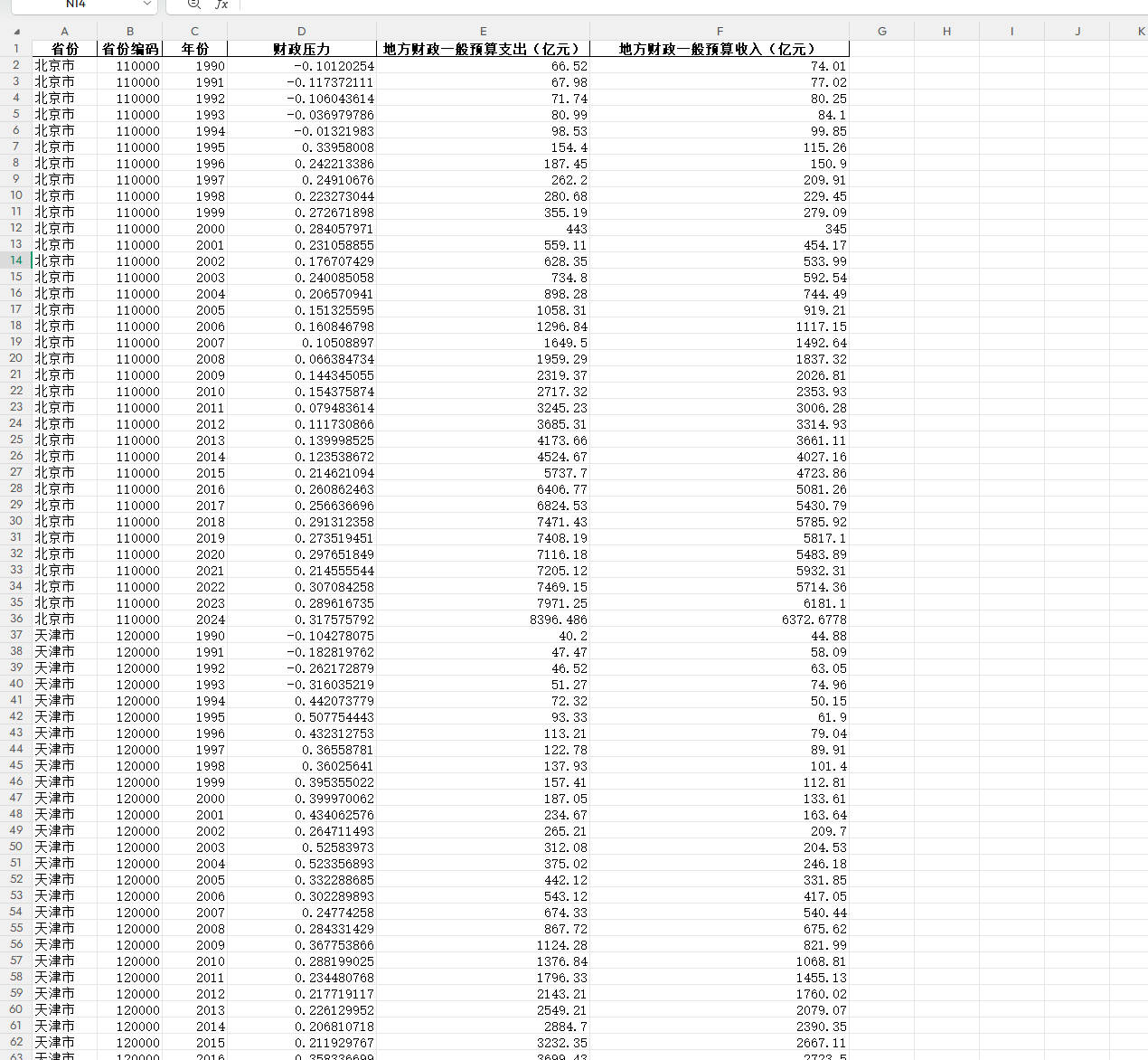 数据名称:省级财政压力数据