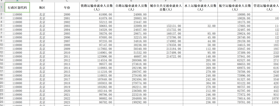 为支持区域数字经济、信息基础设施与交通运输体系相关研究,我们整理形成“全国各地区—互联网、邮电和运输181个相关指标(2000—2024年)”长周期面板数据集。数据以31个省份为统计单元,覆盖2000—2024年