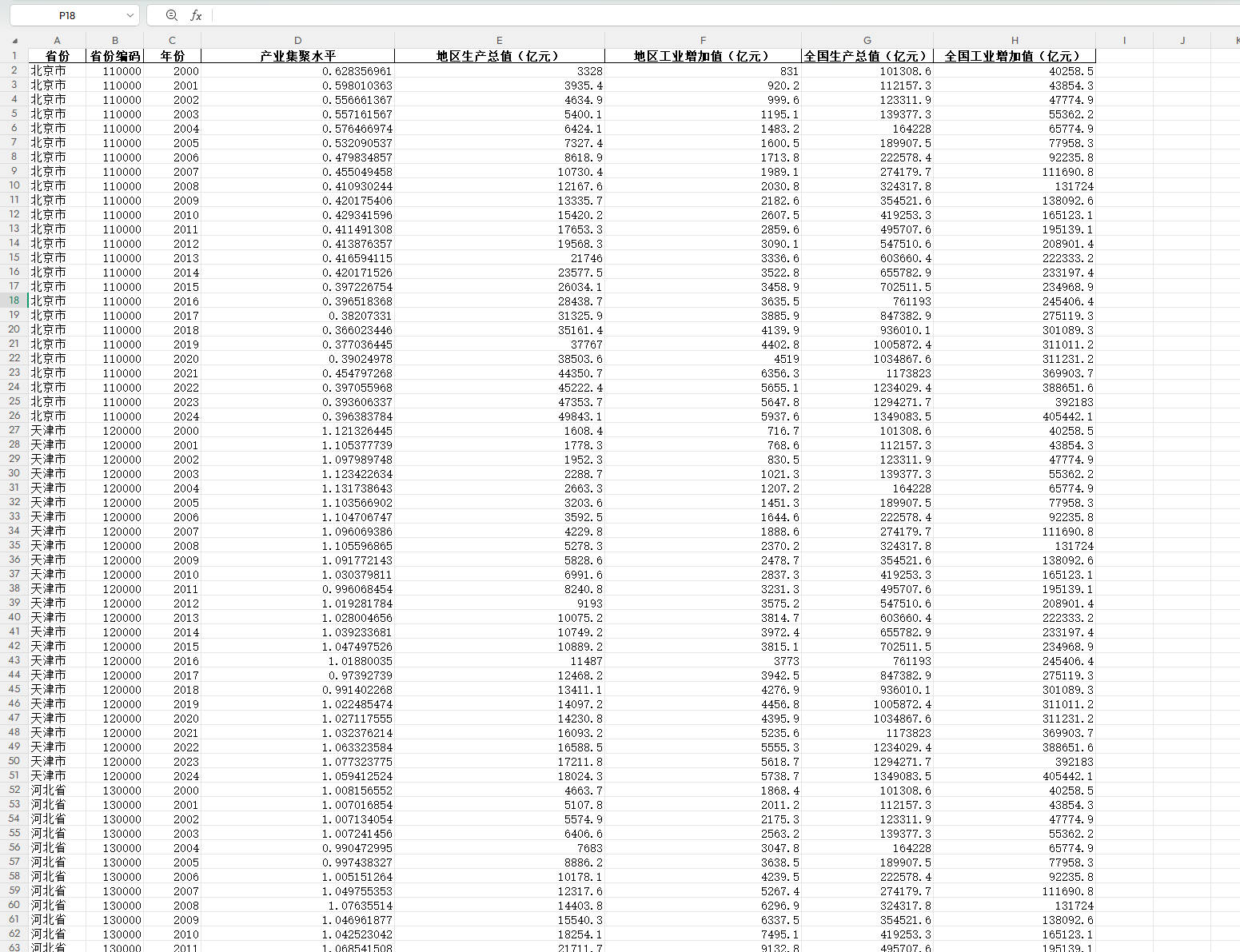 定义:某地区某产业占该地区总产业的比重与全国该产业占全国总产业比重之比