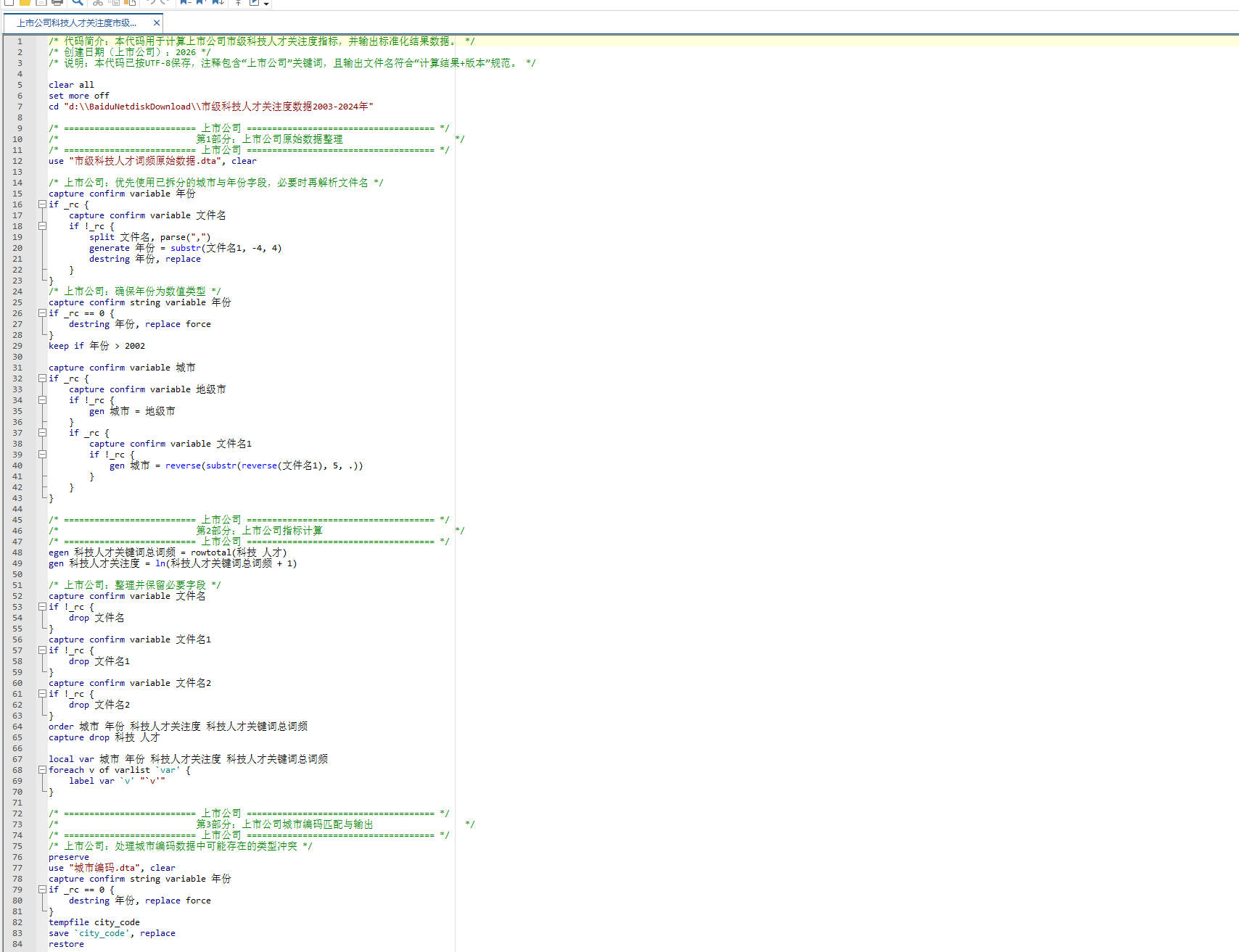 1. 上市公司科技人才关注度市级数据计算代码.do - Stata计算代码