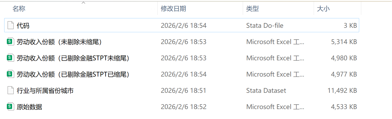 上市公司收入分配共同富裕指标07-24年劳动收入份额数据可以做以下研究:1.劳动收入份额变动趋势与共同富裕进程:分析2007-2024年上市公司劳动收入份额的动态变化,结合国家政策(如脱贫攻坚、乡村振兴),探讨其如何反映居民收入增长与经济发展的同步性,为共同富裕目标下收入分配优化提供实证依据。2.行业差异对收入分配公平性的影响:对比不同行业(如制造业、信息技术业)劳动收入份额的差异,研究产业结构升级、技术进步等因素对行业间收入分配格局的塑造作用,提出缩小行业收入差距的政策建议。3.政策干预效果评估:利用股权分置改革、税收征管数字化等政策实施前后的数据,通过DID模型评估政策对劳动收入份额的净影响,为完善收入分配调节机制提供科学参考。