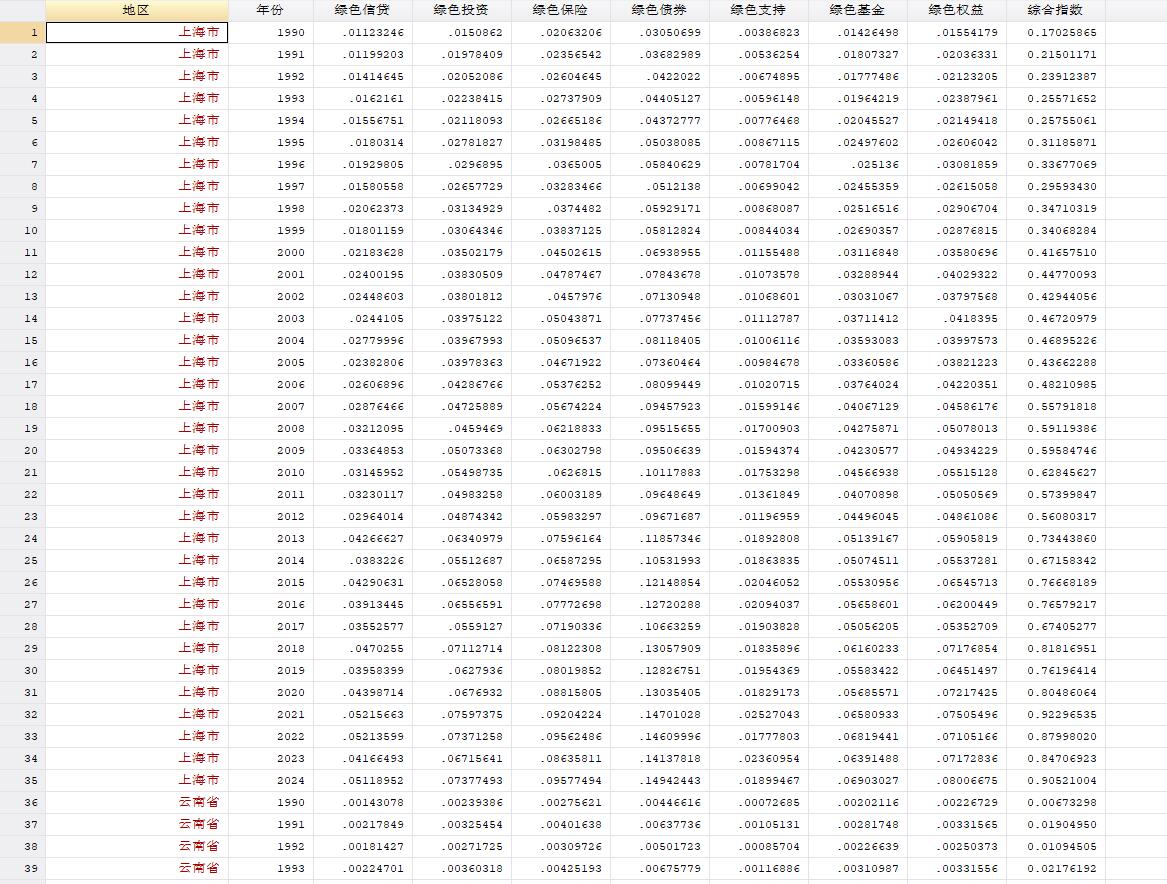 1.绿色信贷——环保项目信贷占比——该省环保项目信贷总额/全省信贷总额