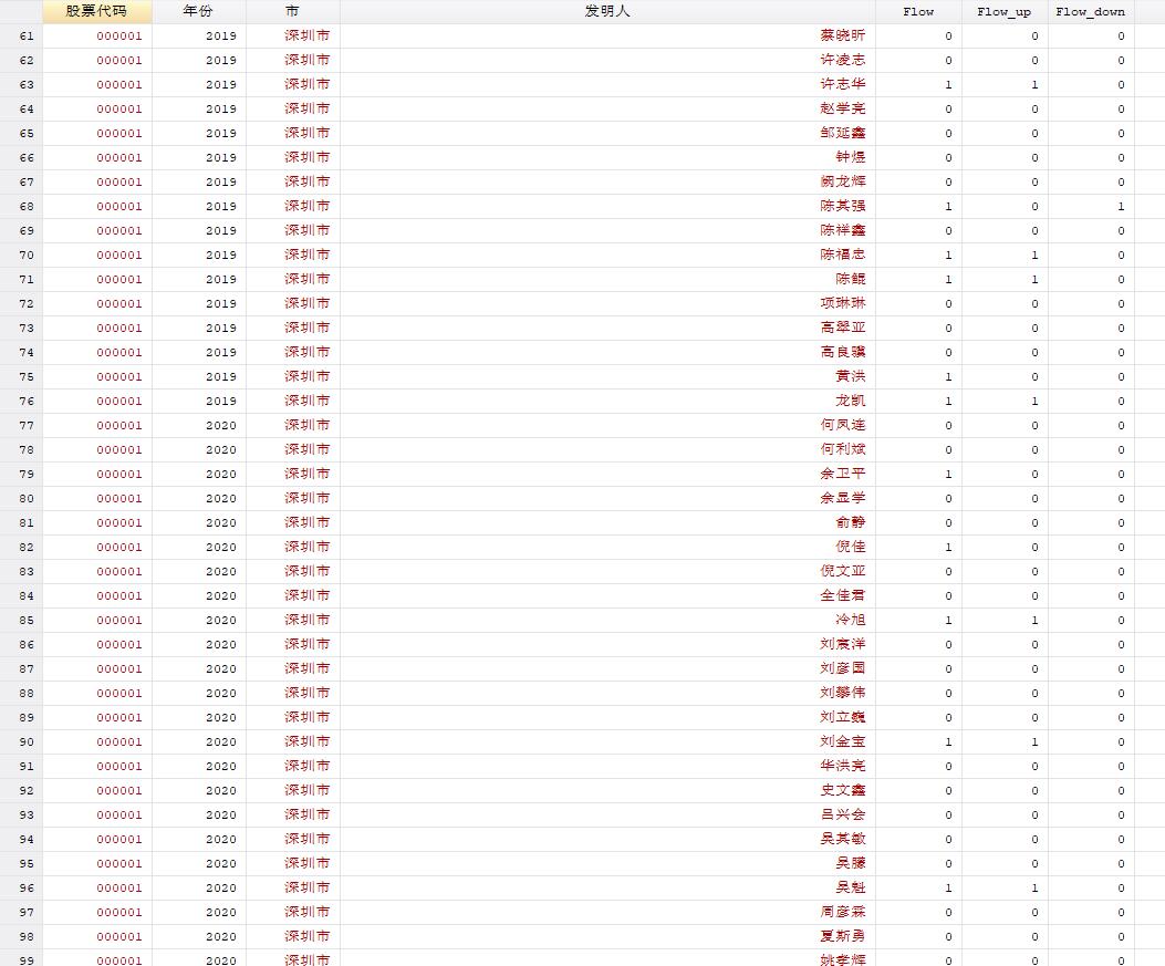 第四步:识别流动行为 (Flow)通过追踪发明人在不同年份所属的上市公司(股票代码)来界定流动