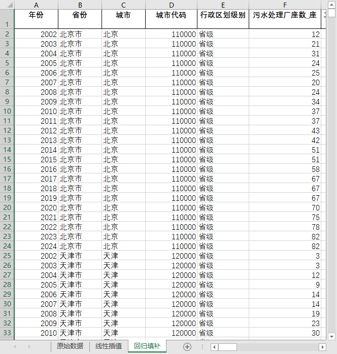 全国680多个地级市县级市2002-2024城市二三级污水处理厂座数处理能力干污泥产生处理量含原始数据无缺失值填补含省级汇总
