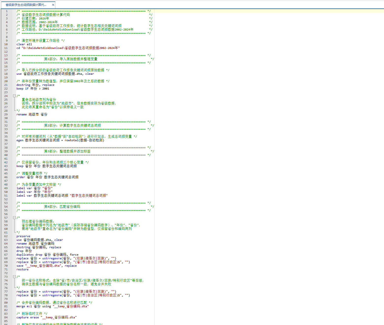 省级数字生态词频数据计算代码.do 数据计算代码(Stata版本)