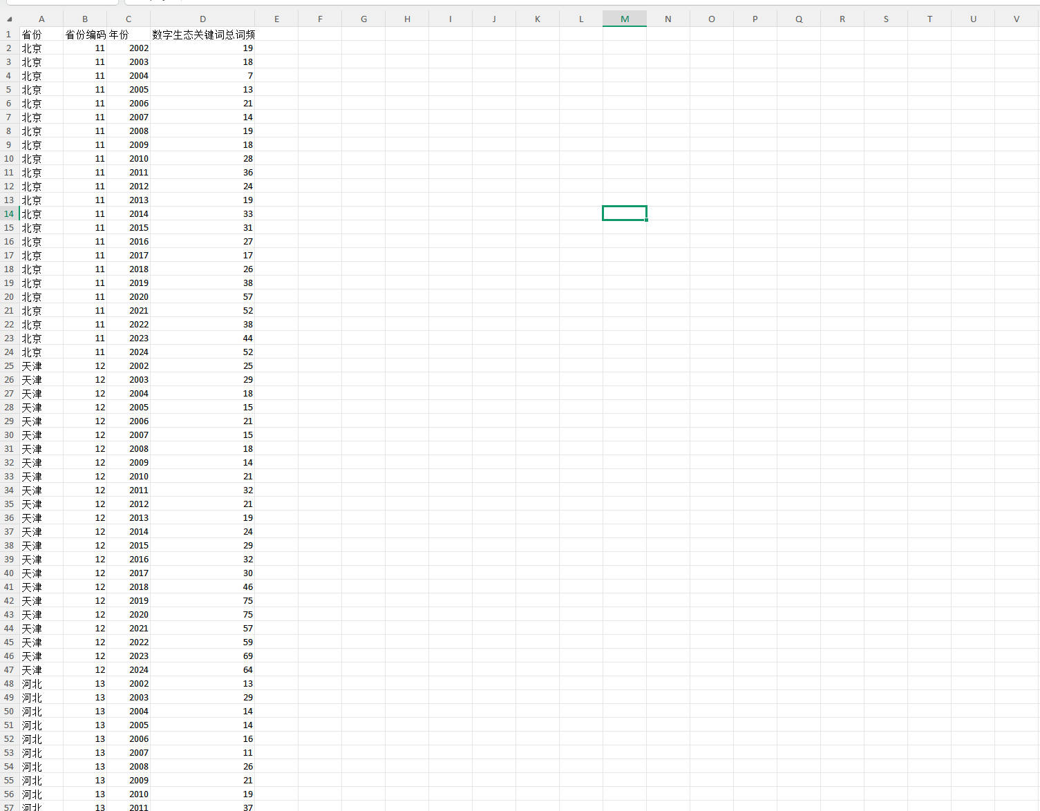 【数据】各省级行政区数字生态词频python-do数据2002-2024年