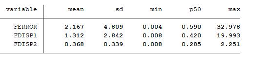 分析师预测分歧度(FDISP1和FDISP2)是指每个分析师最近一次盈余预测值的标准差