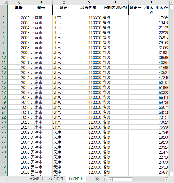 全国680多个地级市县级市2002-2024城市公共供水家庭用水户数用水人口含原始数据无缺失值填补含省级汇总