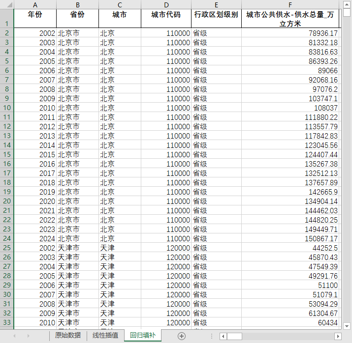 全国680多个地级市县级市2002-2024城市公共供水总量生产运营公共服务居民家庭免费售水量含原始数据无缺失值填补含省级汇总