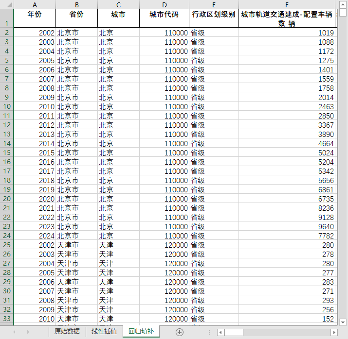 全国680多个地级市县级市2002-2024城市轨道交通建成配置车辆数地铁轻轨有轨单轨磁浮含原始数据无缺失值填补含省级汇总