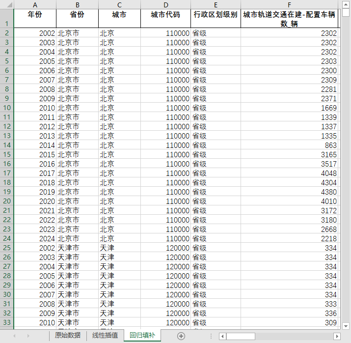 excel数据文件包原始数据(由于多年度指标不同存在缺失值)、线性插值、回归填补三个版本,提供您参考使用。