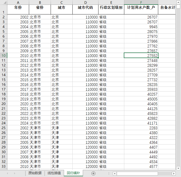 全国680多个地级市县级市2002-2024城市节约用水自备水计划用水户数含原始数据无缺失值填补含省级汇总