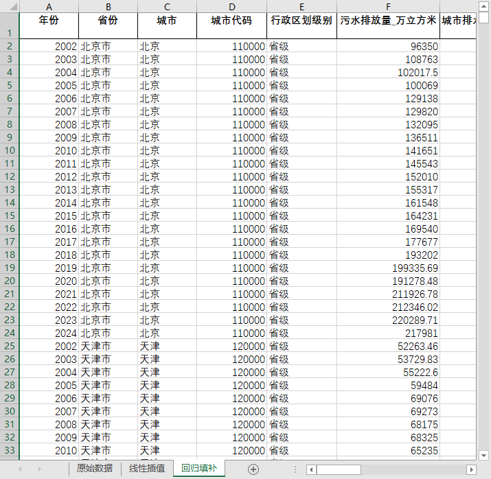 excel数据文件包原始数据(由于多年度指标不同存在缺失值)、线性插值、回归填补三个版本,提供您参考使用。