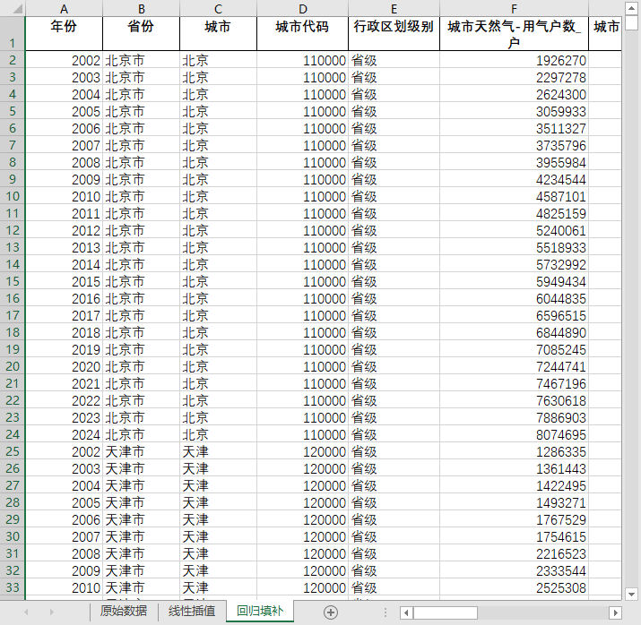 全国680多个地级市县级市2002-2024城市天然气用气家庭户数用气人口汽车加气站数含原始数据无缺失值填补含省级汇总