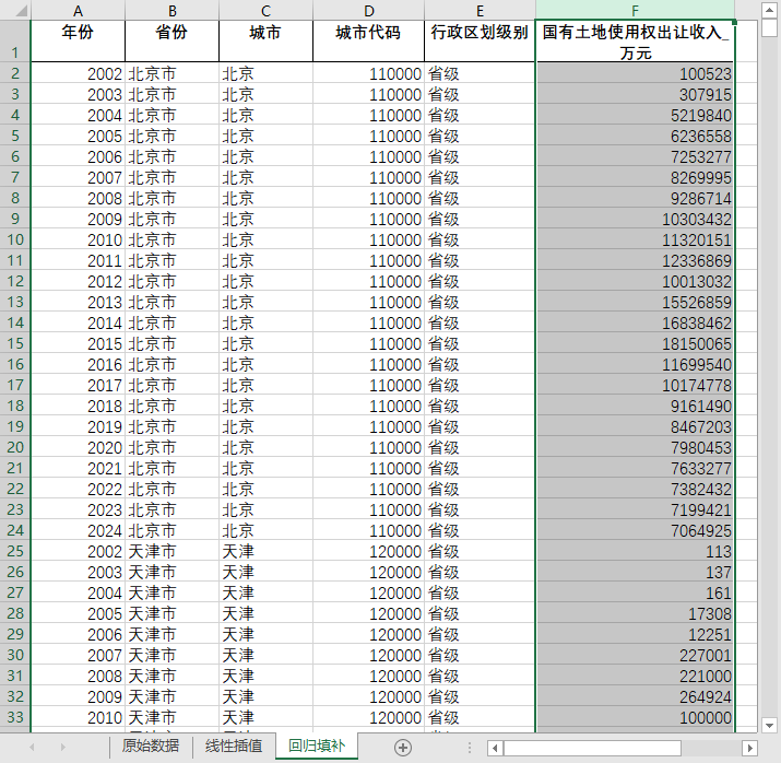 全国680多个地级市县级市2002-2024城市维护建设资金国有土地使用权出让收入含原始数据无缺失值填补含省级汇总