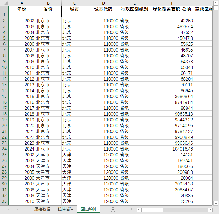 全国680多个地级市县级市2002-2024城市园林绿化覆盖面积建成区绿地面积公园个数含原始数据无缺失值填补含省级汇总