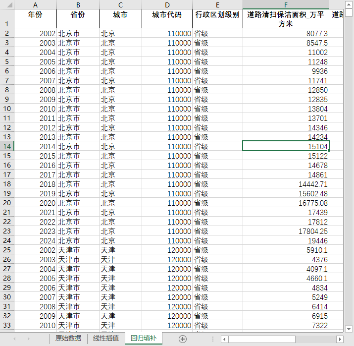 全国680多个地级市县级市2002-2024道路清扫保洁面积道路机械化清扫保洁面积含原始数据无缺失值填补含省级汇总