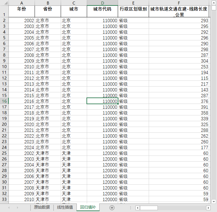 全国680多个地级市县级市2002-2024地铁轻轨单轨有轨磁浮城市轨道交通在建线路长度含原始数据无缺失值填补含省级汇总