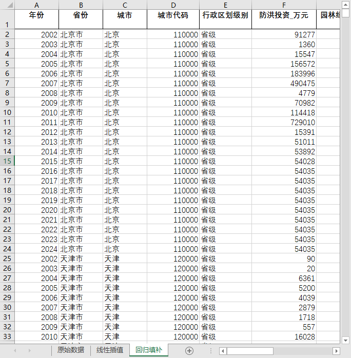 全国680多个地级市县级市2002-2024防洪园林绿化市容环境卫生垃圾处理固定资产投资含原始数据无缺失值填补含省级汇总