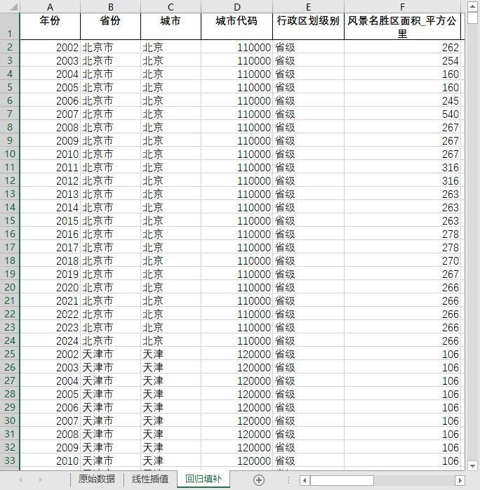 全国680多个地级市县级市2002-2024风景名胜区供游览面积境内境外游客数量含原始数据无缺失值填补含省级汇总