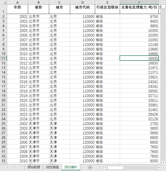 全国680多个地级市县级市2002-2024生活垃圾无害化处理卫生场填埋堆肥焚烧厂处理能力含原始数据无缺失值填补含省级汇总