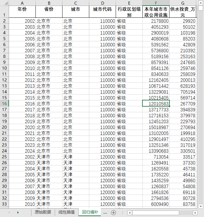 全国680多个地级市县级市2002-2024市政公用设施供水燃气集中供热固定资产投资含原始数据无缺失值填补含省级汇总